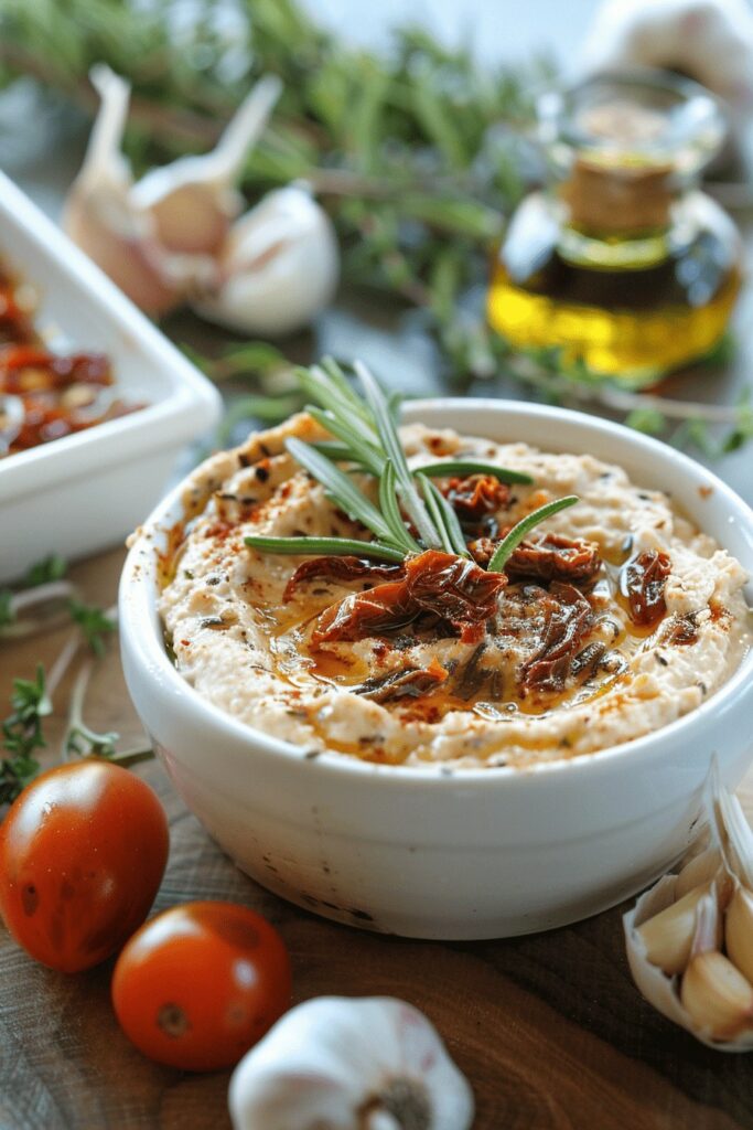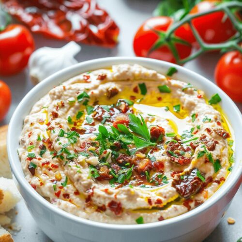 Cette recette de dip allégé aux tomates séchées et fromage de chèvre est parfaite pour un apéritif sain et savoureux. Facile et rapide à préparer, ce dip combine des tomates séchées, du fromage de chèvre, de l’ail et de l’huile d’olive pour un mélange crémeux et plein de saveurs méditerranéennes.