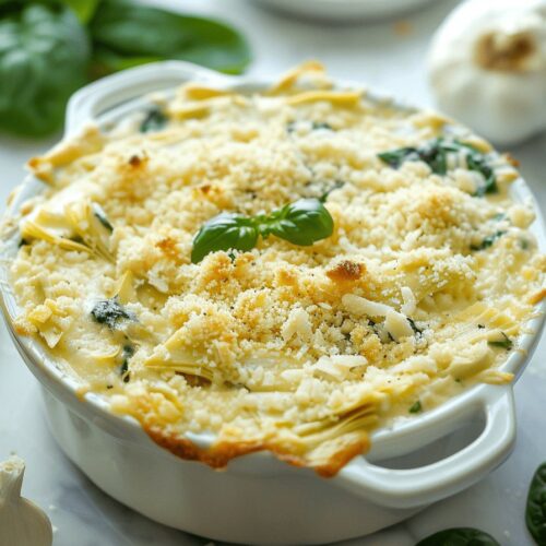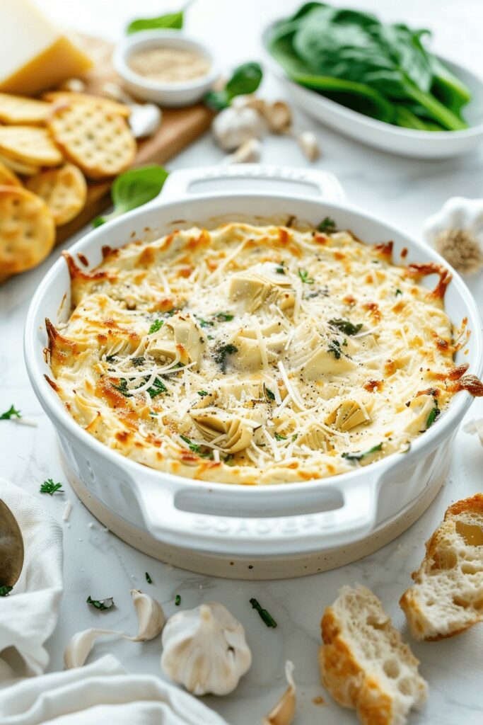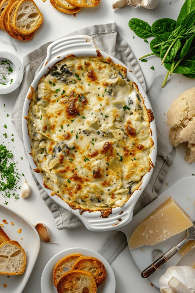 Les crackers ou les tranches de baguette grillées sont également d’excellentes options. Ils apportent un contraste croustillant qui complète parfaitement le dip aux artichauts.