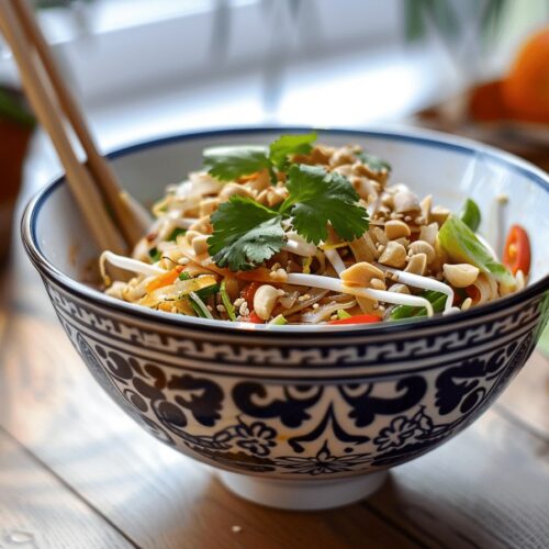 Pad Thai végétarien : Une version sans viande du plat de nouilles thaïlandaises, avec du tofu et des légumes croquants. Parfait pour un repas rapide et savoureux.