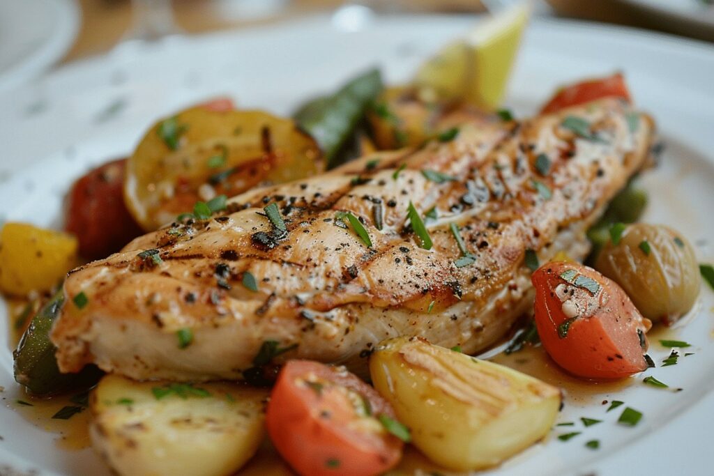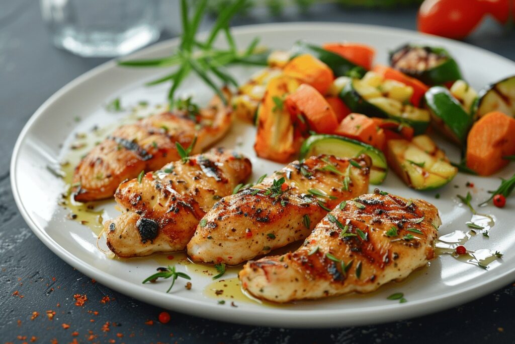 Le Poulet Grillé et Légumes Rôtis est une option délicieuse et nutritive pour un repas complet et équilibré. Cette recette simple combine des morceaux de poulet grillé, tendres et juteux, avec une variété de légumes rôtis assaisonnés à la perfection. Facile à préparer, ce plat est parfait pour un déjeuner ou un dîner sain et savoureux. Accompagnez-le d’une vinaigrette légère pour une touche supplémentaire de saveur.