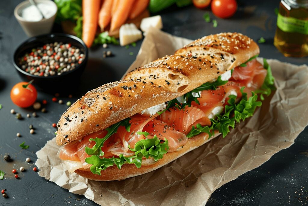 - Assemblage du Sandwich : Étalez généreusement le mélange de fromage frais sur deux des tranches de pain toasté. Disposez des tranches de saumon fumé par-dessus. Ajoutez les tranches d’avocat si vous le souhaitez.