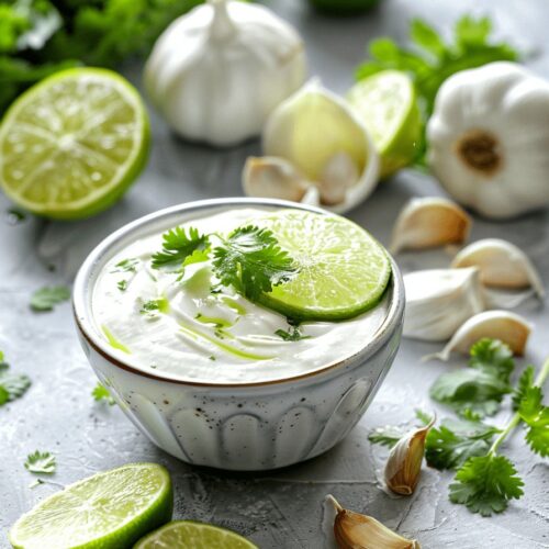 Cette recette de sauce au yaourt et citron vert est idéale pour ajouter une touche de fraîcheur et de saveur à vos plats. Simple à préparer, elle combine l’onctuosité du yaourt grec avec l’acidité du citron vert et l’arôme de la coriandre et de l’ail.
