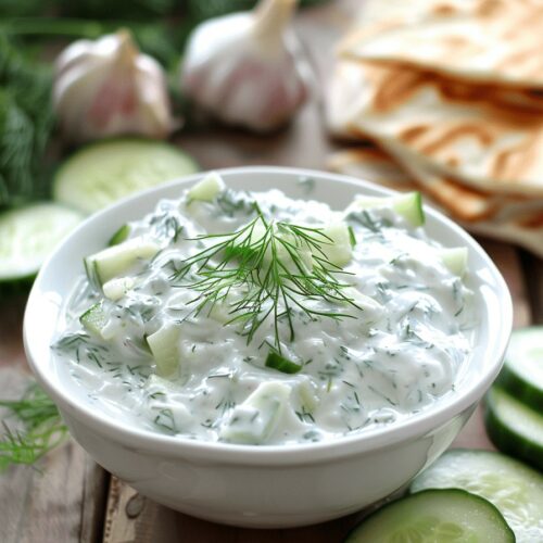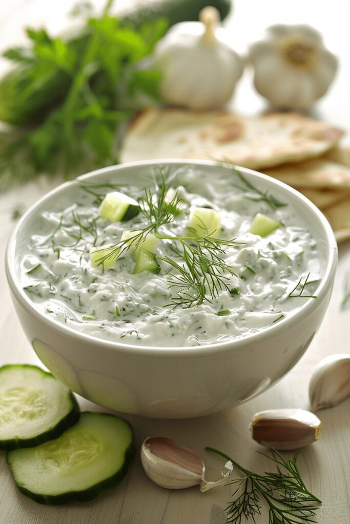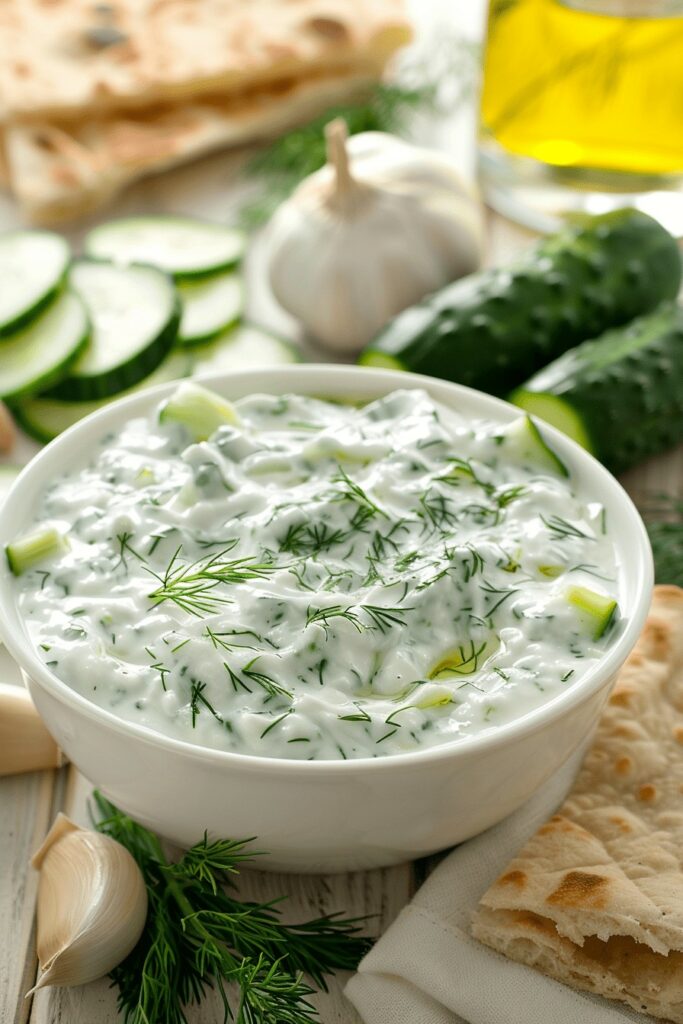 Ces accompagnements sont idéaux pour profiter pleinement des saveurs riches et crémeuses du Tzatziki, apportant une touche méditerranéenne à vos repas.